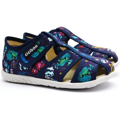 Dětské bačkory Bighorn FILIP v modré barvě s motivem dinosaura na špičce. Svrchní část obuvi je vyrobena z vysoce kvalitní bavlny a podešev obuvi z PVC. Stélka bačkor je z...