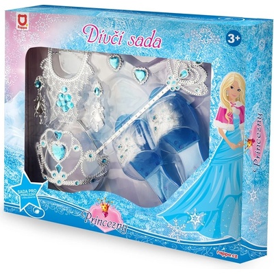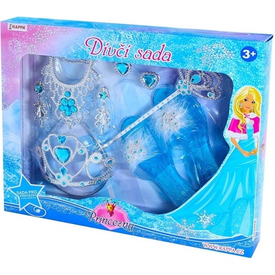 Sada pro Ledovou princeznu. Sada obsahuje čelenku, naušnice, kouzelnou hůlku, náramek a střevíčky s drahokamem.