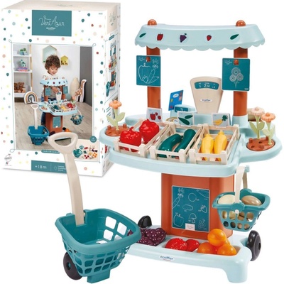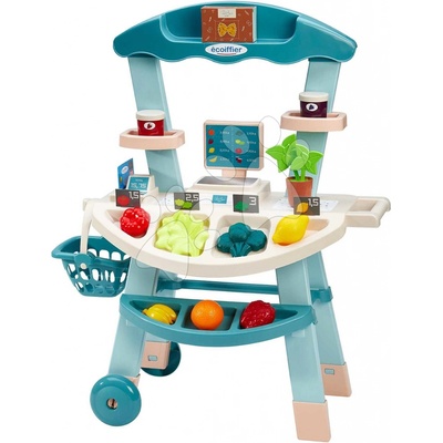 Zeleninový stánek s košíkem Vert Azur od francouzského výrobce Écoiffier je skvělý stánek na kolečkách, který potěší všechny děti od 18 měsíců, které si rády hrají na prodavače...