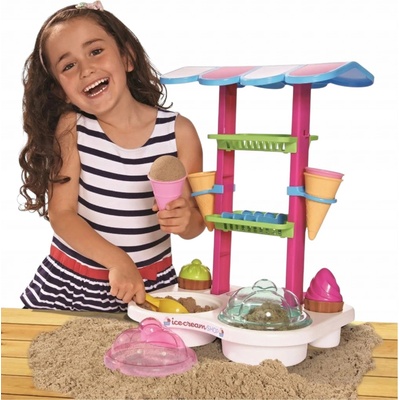 Stánek na výrobu zmrzliny s mnoha doplňky. Sada obsahuje: Stánek se dvěma odkládacími poličkami a dvěma držáky zmrzlinových kornoutů, 4 kornouty na zmrzlinu, 4 lžičky,...