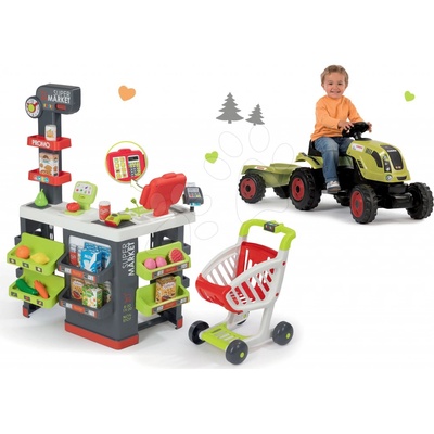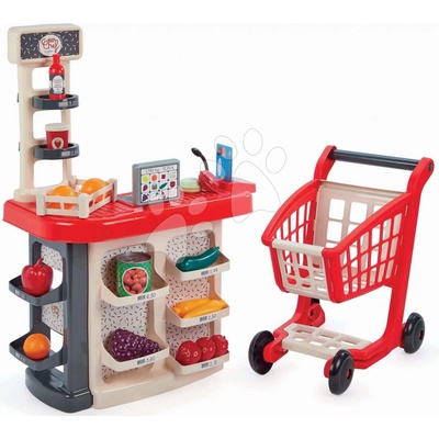 Smoby supermarket s elektronickou pokladnou s LCD displejem, s integrovanou kalkulačkou, se skenerem s funkcí zvukového signálu a světla, nastavitelnými hodinami a spoustou...