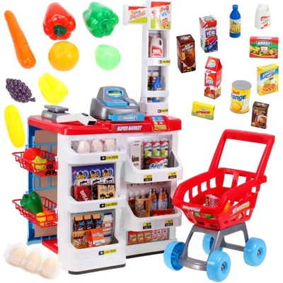 SUPERMARKET PRO DĚTI - Pro děti od 3 let - Součástí balení je mnoho produktů/doplňků ke hře - 47 prvků v sadě - Pokladna, pípající skener a váha - Nákupní vozík pro větší...