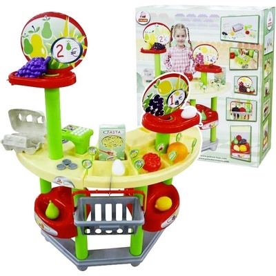 Pult Supermarket je balen v krabici 50 x 56 cm velké. Pult je 87 cm vysoký. Součástí balení jsou i všechny vyobrazené doplňky, ovoce, cenovky kasa, košík, mince apod. Pult byl...
