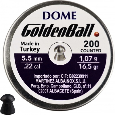 Diabolky do vzduchovky "5,5MM DOME GOLDENBALL" Balení 200 kusů 5,5mm olověných diabolek do vzduchovky. Vyrobeno v Turecku, diabolky mají zaoblenou špičku. Prodej možný pouze...