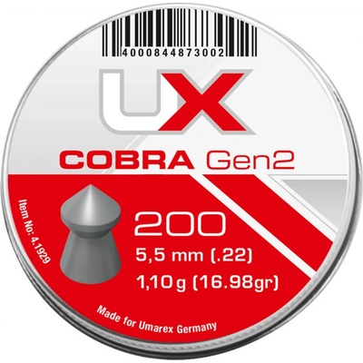 Diabolo Umarex Cobra Gen2 200ks cal.5,5mm Diabolo Cobra Gen2 firmy Umarex se špičatou hlavou a drážkovaným pláštěm. Hmotnost: 1,1 g Balení: 200 ks