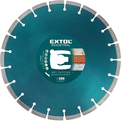 EXTOL INDUSTRIAL kotouč diamantový řezný segmentový na BETON, suché řezání, O 300x25,4x3,2mm EXTOL INDUSTRIAL kotouč diamantový řezný segmentový na BETON, průměr 300 mm, šířka...