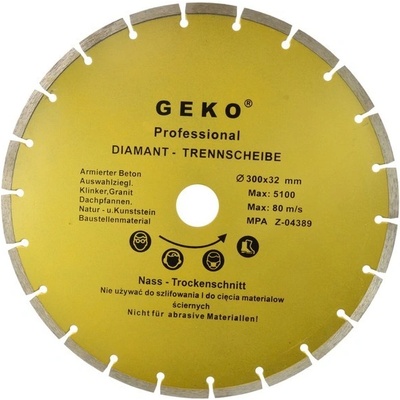 Řezný segmentový diamantový kotouč určený pro řezání žuly a jiných tvrdých stavebních materiálů. Vlastnosti produktu: Průměr kotouče: 300 mm Průměr středového otvoru: 32...