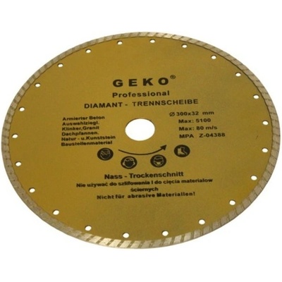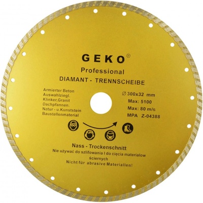 Diamantový kotouč TURBO 300mm x 8mm x 32mmDiamantový kotouč s vnějším průměrem 300 mm na zpracování stavebních materiálů (železobeton, cihla, keramika, žula, kamenina, mramor). Kotouč je vyroben z niklové oceli s přídavkem mědi, což zvyšuje odolnost vůči trhlinám a...