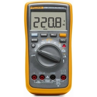 Kompaktní digitální multimetr Fluke 17B+ s automatickou nebo manuální volbou rozsahu, MIN/MAX, REL, teploměrem a dalšími funkcemi s měřením napětí do 1000 V a bezpečnostní...