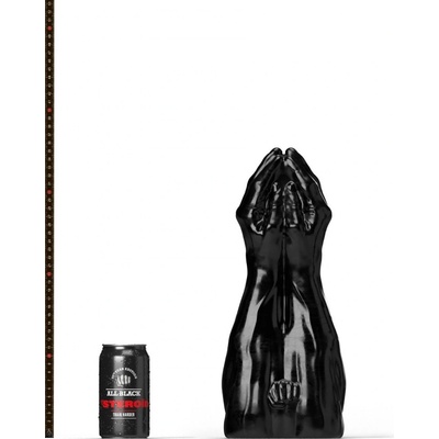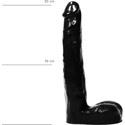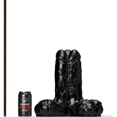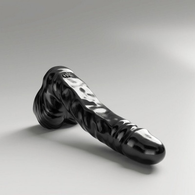 Poddajné dildo černé barvy vyrobené ze silikonu se výrazným žaludem a silnou přísavkou. Celková délka 21 cm, použitelná délka 16,5 cm a průměr 5,3–6,5 cm.