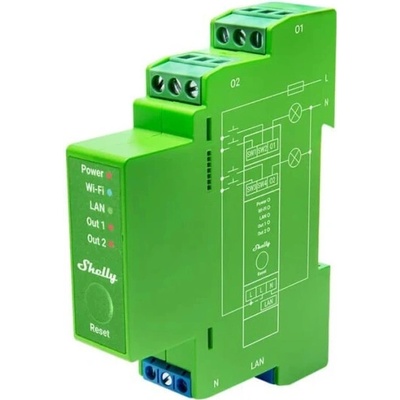 2-KANÁLOVÝ STMÍVAČ PRO DIN LIŠTU SHELLY PRO DIMMER 2⭐⭐⭐⭐⭐ Zařízení může fungovat autonomně v místní Wi-Fi síti nebo může být ovládáno službami automatizace domácnosti v cloudu....