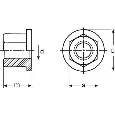 matice 6hr. 1,5d vysoká s nákružkem, tř. 10 jemný závit, bez povrchové úpravy
