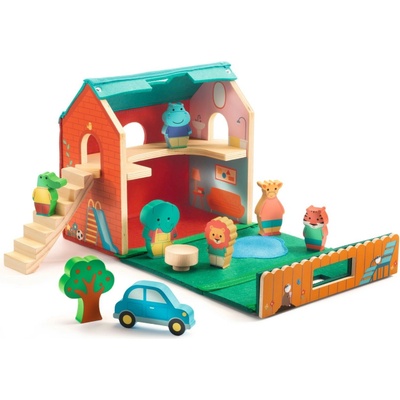 Dřevěný domeček pro zvířátka - Djeco Nádherný dřevěný domeček vhodný pro děti od 2 let. Farmička pro domácí zvířátka. V balení najdete nejen farmičku, ale i pět dřevěných...