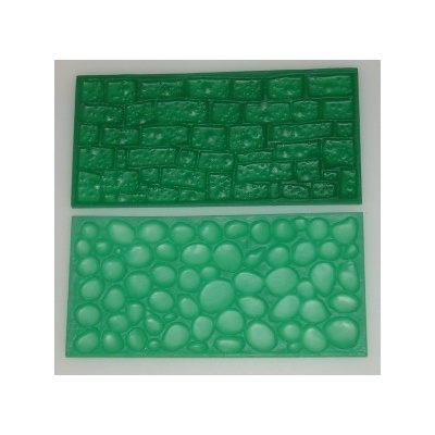 Sada obsahuje 2 otiskovací podložky na marcipán (z měkkého plastu) o rozměru 15 x 7 cm. Motiv podložek: dlažební kostky a kamenná zeď.