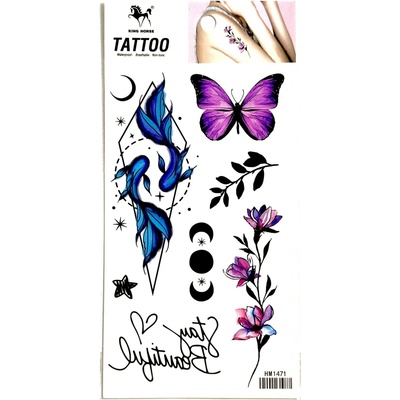 Buďte in a ozdobte si své tělo dočasným tetováním Motýli a květiny. Tetování odstraníte mýdlem nebo dětským olejíčkem.
