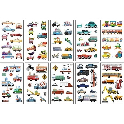 Dočasné tetování - tetovací obtisky ze série Auta nabízí 10 různých variant. Tetování odstraníte mýdlem nebo dětským olejíčkem.