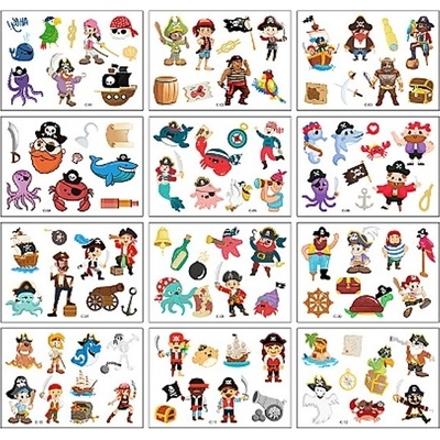 Dočasné tetování - tetovací obtisky ze série Piráti nabízí 12 různých variant. Tetování odstraníte mýdlem nebo dětským olejíčkem.