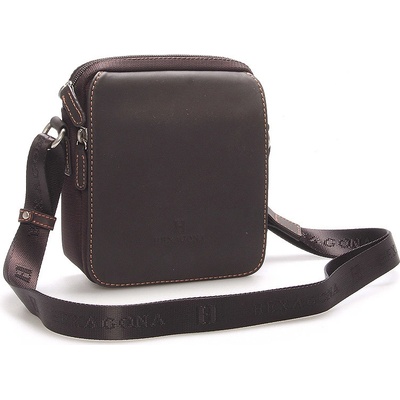 Hnědá pánská taštička/dokladovka s koženou klopou a úchyty na zip. Pod klopou jedna kapsa bez zipu a jedna se zipem. Uvnitř kapsa na zip. Zezadu kapsa na magnetický cvoček. Součástí tašky je nastavitelný popruh z nylonu. Materiál - klopa + úchyty z hovězí kůže,...