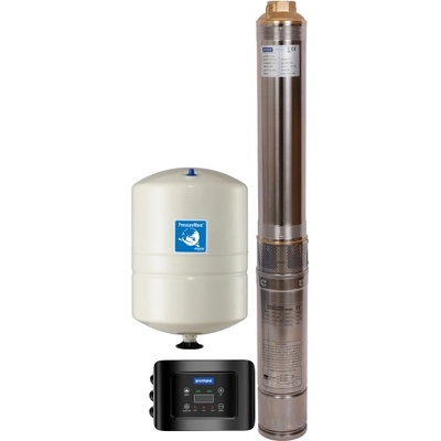 Domácí vodárna s elektronickou regulací pomocí frekvenčního měniče. Set tvořený 4“ ponorným čerpadlem 4ST s frekvenčním měničem a 4l tlakovou nádobou.