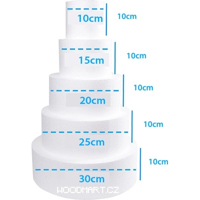 4 patra (4x polystyrenové kolečko - průměr 25, 20, 15 a 10cm. Výška jednoho kolečka: 5 cm, Materiál: polystyren