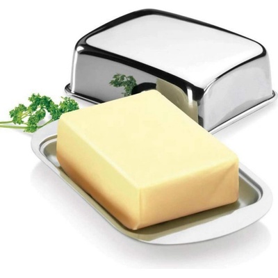 Máslenka k uchování másla v hygienickém prostředí v lednici. Nerezová dóza je zdravotně nezávadná a snadno omyvatelná, vhodná i do myčky na nádobí.