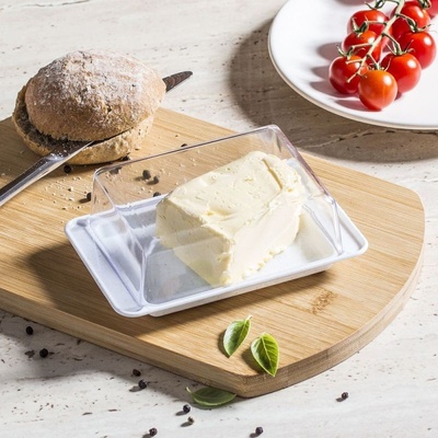 Dóza na máslo s poklopem, vyrobena z odolného plastu s moderním designem. Je vhodná pro uložení a servírovaní másla. Uchová máslo čerstvé a svěží. Vhodná do myčky nádobí....