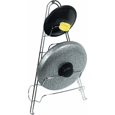 Do každé kuchyně se hodí tento praktický pomocník - závěsný držák na tři poklice různých velikostí, vyrobený z pochromovaného kovu.