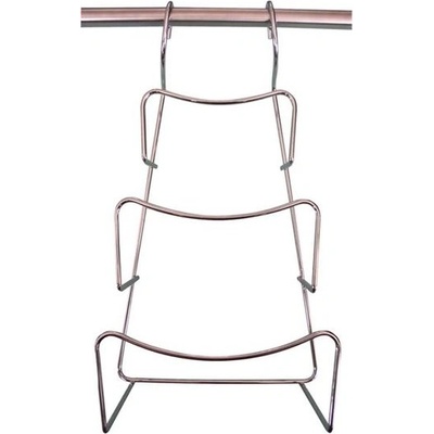Masivní provedení z nerezového drátu. 2 hmoždinky s vruty jsou součástí balení. Pro 8 poklic. Výška 64,5cm šířka 23cm (u paty)