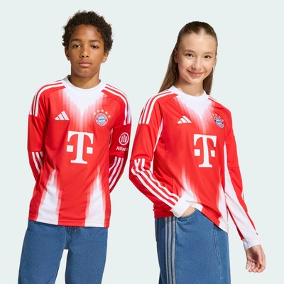 Pocta jejich domovskému městu. Další potvrzení jejich ideálů. Zblízka si na tomto dětském domácím fotbalovém dresu Adidas FC Bayern 25/26 v červeném barevném provedení můžeš...