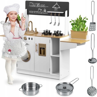 Dětská dřevěná kuchyňka s vybavením Kruzzel 22117 , XL, bílá Děti jsou přirozeně zvědavé na svět a rády napodobují ostatní. Učí se pozorováním a hrou. Dřevěná kuchyňka je...