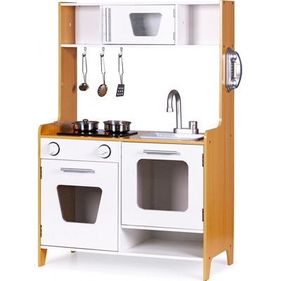 DŘEVĚNÁ KUCHYŇKA OD ECOTOYS Pro děti starší 3 let Stimuluje fantazii a rozvíjí manuální dovednosti Má mnoho funkcí skutečné kuchyně Velká velikost kuchyně Funkční vestavná...