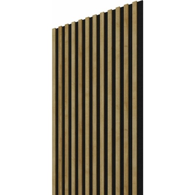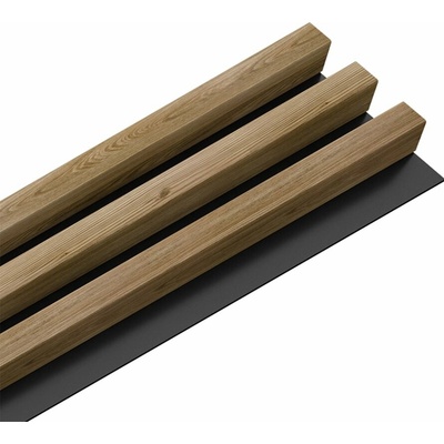 Dřevěná lamela ACOUSTIC PROLINE s černým podkladem 2400 x 605 x 20 mm dekor dub 12 lamel v dubovém odstínu na černém filcovém podkladu o rozměru 2400 x 605 x 20 mm, které se...