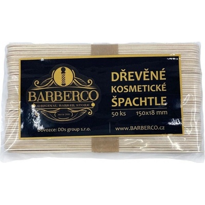 BARBERCO - Dřevěné LARGE špachtle 50ks Dřevěné kosmetické špachtle BARBERCO ve velké velikosti k nanášení vosku na větší části těla. Rozměry špachtlí jsou 15 x 1,8 cm. V jednom...