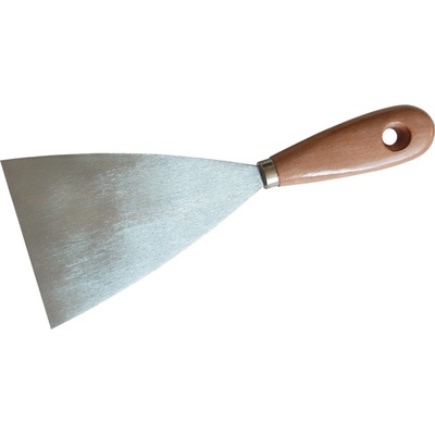 Štukatérská nerezová špachtle s dřevěným držadlem.PoužitíNa štukatérské práce.Technické parametryMateriál: nerezová ocelRukojeť: dřevoŠířka: 80 mm
