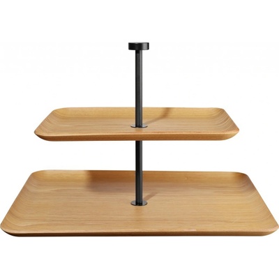 Dřevěný etažér umožňuje servírování a prezentaci sladkých i slaných pochoutek až na dvou patrech, což Vám ušetří místo na jídelním stole.