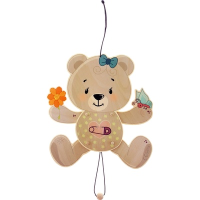 Tento závěsný pohyblivý medvídek je lákavým poutačem do každého pokojíčku. Medvídek je vyroben z březového dřeva. Zatažením za provázek s kuličkou medvídek pohybuje nožkami a...