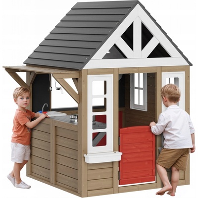 Venkovní dřevěný domeček na hraní Tento dřevěný domeček na hraní je navržen pro děti ve věku 2–8 let a nabízí prostornou zábavní část, která pojme více dětí najednou a...