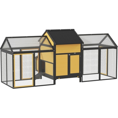Dřevěný kurník 247 x 125 x 113,5 cm | žlutý Hýčkejte svá kuřata pomocí tohoto kurníku, který nabízí dvojitý výběh, čímž kombinuje styl a funkčnost. Nabízí jak vnitřní, tak...