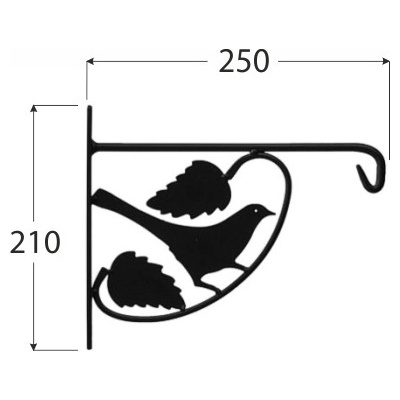 Držák na květináče nebo koše květin v černé barvě zdobený listy a ptáčkem. Upevňuje se na zeď, pergolu nebo plot pomocí vrutů a hmoždinek, které jsou součástí balení. Přírodní...