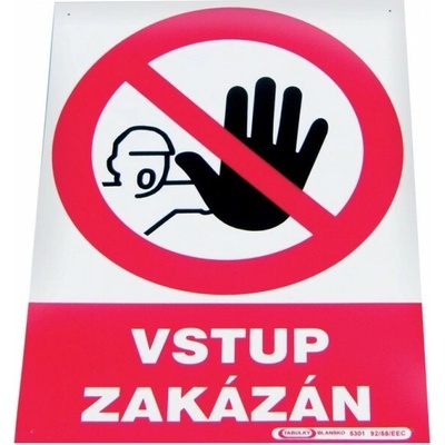 Tabulka "Vstup zakázán". Bezpečnostní, plastová, tloušťka 0,5 mm, znak + text v českém jazyce. Rozměr: 210x297 mm (A4).