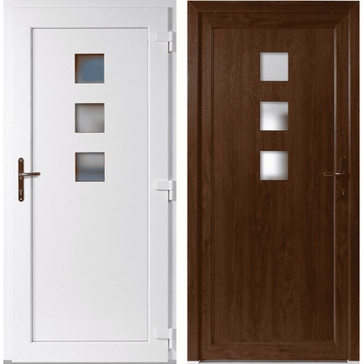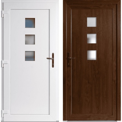 Skladem – jednokřídlé vchodové plastové dveře 3D Linda s izolačním dvojsklem crepi 32mm v rozměru 98x198 cm (rozměr i se zárubní) se otevírají ven a jsou pravé. Tyto vstupní...