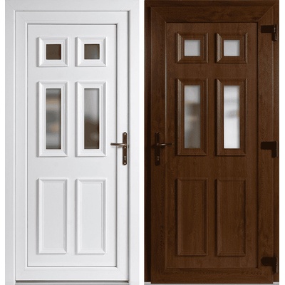 Skladem – vchodové jednokřídlé plastové dveře Emily Plné v barvě zlatý dub / bílá o rozměru 98 x 198 cm (rozměr i se zárubní) se otevírají dovnitř a jsou levé. Jednoduchý...