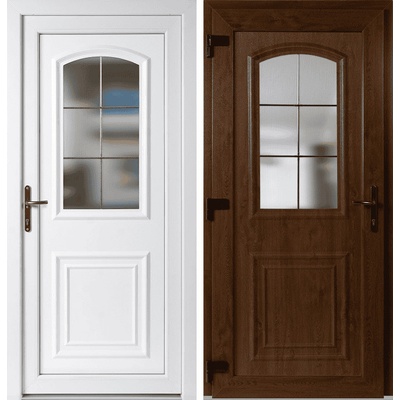 Vchodové plastové dveře Soft Venus, Zlatý dub/bílá, pravé, otevíravé dovnitř o rozměru 80x198cm z profilu SOFT WDS 70AD, nebo profilu GEALAN S8000 vynikají maximální kvalitou...