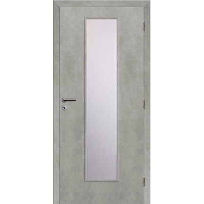 Nadčasové interiérové dveře v betonovém dekoru s prosklením, které dodají prostoru světlo a čistý vzhled.