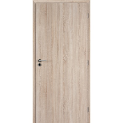 Nenápadné dveře s přirozeným dřevěným vzhledem a praktickým povrchem — ideální volba do běžného domácího interiéru.