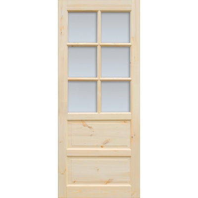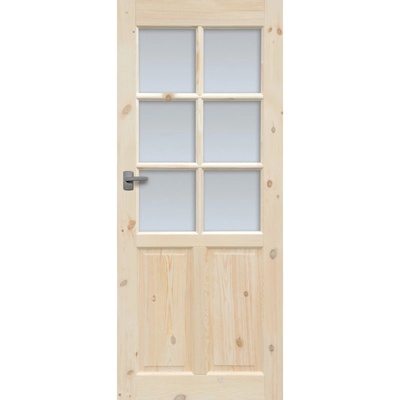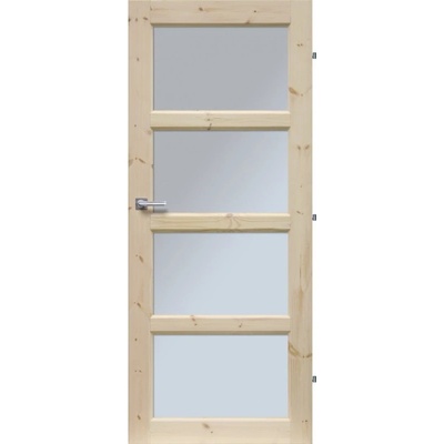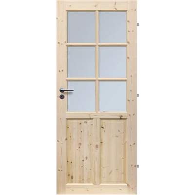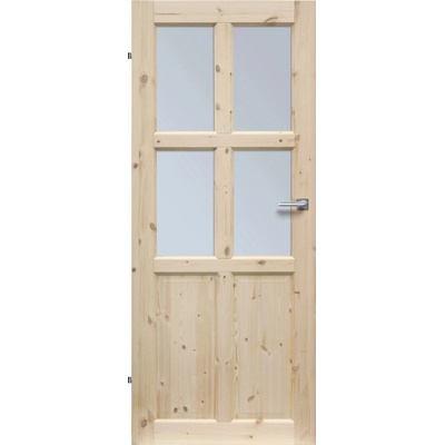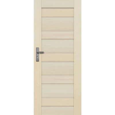 Přírodní dřevěné dveře s autentickou strukturou borovice — nechají vám volnost v konečné úpravě a hodí se do různých interiérů.