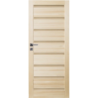 Přirozené dřevěné dveře, které vnese do bytu teplo borovice a decentní světlo — jednoduchá základna pro vaši finální úpravu.
