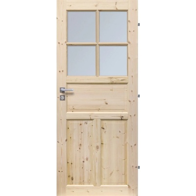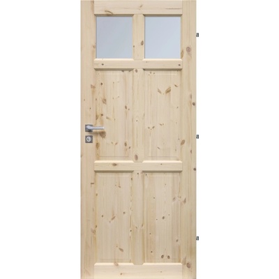Přírodní dřevěné dveře s autentickou strukturou borovice — nechají vám volnost v konečné úpravě a hodí se do různých interiérů.