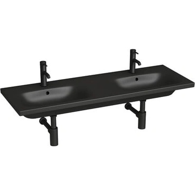 Závěsné dvojumyvadlo Mio-N, rozměr 130x45x15 cm, materiál sanitární keramika, barva černá mat, s přepadem, 2 otvory pro baterii. Možno instalovat samostatně na stěnu nebo se...