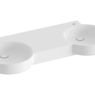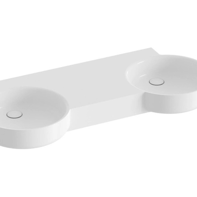 Nábytkové dvojumyvadlo z litého mramoru Lite k instalaci na zeď nebo k zapuštění do závěsné skříňky, bez přepadu. Bílé provedení. Bez otvorů - pro kombinaci s umyvadlovými podomítkovými bateriemi.